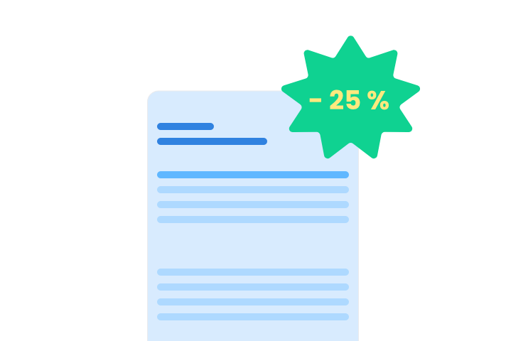 Vous bénéficiez de 25 % de réduction sur le montant net sur votre première facture (cumulable à des réductions en tant qu’adhérents à des groupements partenaires ou autres offres de réduction) pour vous !